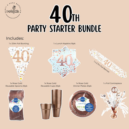 View full detailsGet your celebration sparkling with the 40th Party Starter Bundle in Rose Gold & White! This set includes everything you need to kick off your ...