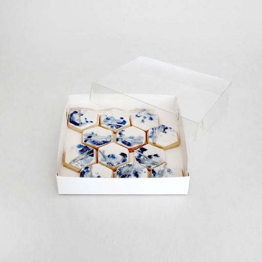 View full detailsA versatile quality presentation box for all of your baked delights. Easy to assemble. Perfect for cookies/ biscuits, slices and macarons.These box...