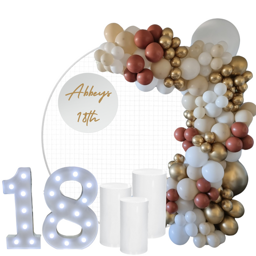 View full detailsOur Balloon Garland and Mesh Package is perfect for any occasion! Choose from a variety of colour combinations. What is included? A mesh backdro...