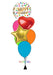 Bouquet includes 1 x Orbz Foil, 1 x Happy Birthday Foil, 2 x Heart/Star Foils, 4 x Latex Balloons all helium filled in store tied onto a standard balloon weight
