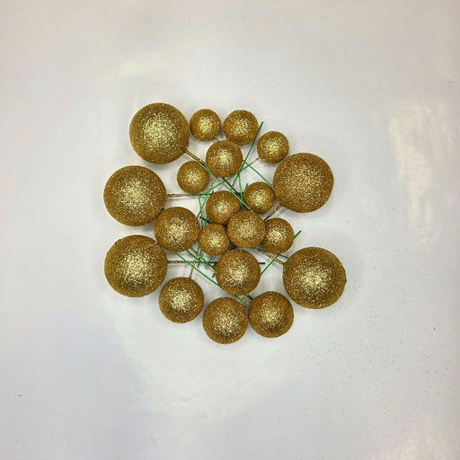 Cake Ball Toppers 20pc Mixed Sizes - Gold Glitter
