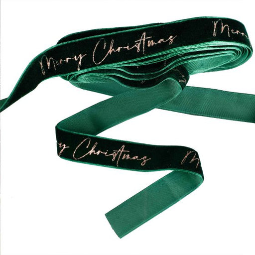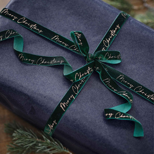 View full detailsEach pack contains: 6m of green velvet ribbon with gold foiled 'Merry Christmas' script.
