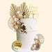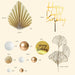 Celebrate in style with our Birthday Cake Topper Deco Kit! This elegant kit includes 25 pieces of ball-shaped cake toppers, 2 palm leaves, 1 leaf topper, and 2 birthday cake toppers in gold and white.
