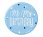 This It's My Birthday Blue Glitz Badge measures 7.5cm and features a sharp pin. Perfect for any birthday celebration, it adds a touch of glitz and glamour to your outfit. Caution: sharp pin.