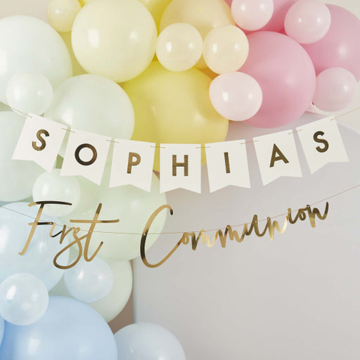 View full detailsCommunion Gold Customisable Card Banner 2.2m Mark this sacred milestone with a personalised 2.2m gold banner that celebrates your child's communion...