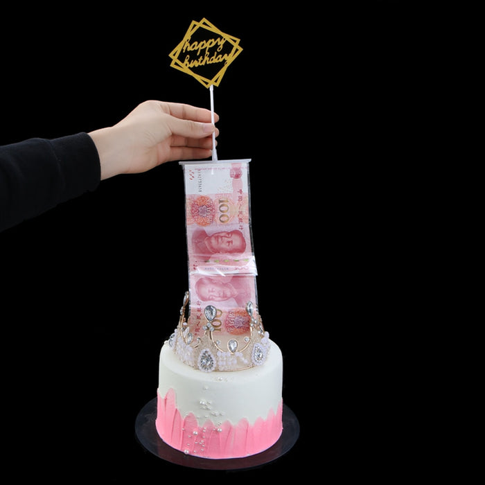 The Surprise Money Cake Kit is a fun and unique way to gift money. Simply lift the Cake Topper to reveal a strip of REAL MONEY hidden inside your delicious cake. Also ideal for adding photos inside!