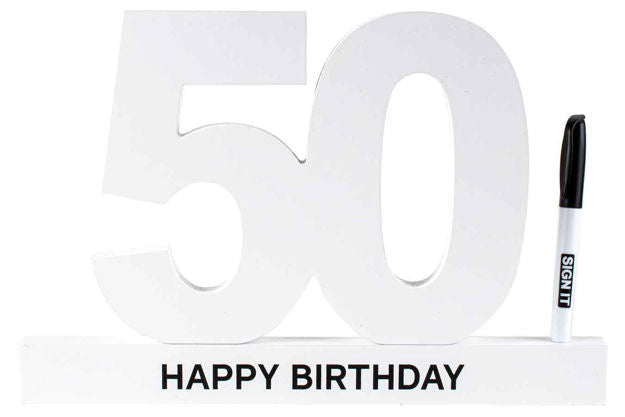 This 50th Birthday Signature Block White is the perfect addition to your birthday celebration. Measuring 33cm x 22cm, it includes a pen and allows your guests to write personalised birthday messages. Keep the memories alive with this unique and fun party accessory.