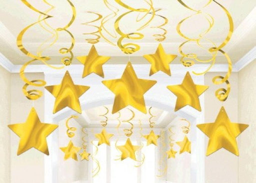 Pack includes: 14 green coloured foil swirl decorations (56cm long). 16 green coloured foil swirl decorations with 12.7cm foil star cutouts attach...