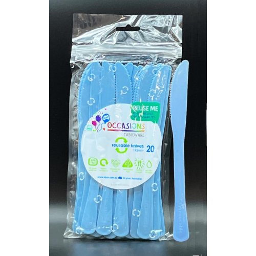 Reduce your environmental impact with our Reusable spoons, consisting of 20 plastic knives. These knives are re-engineered for reusability and are BPA, Styrene, and DEHP free. Plus, they are heat, water, and oil resistant, making them a durable and eco-friendly choice for your lunch meals.