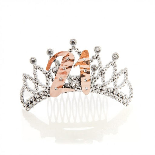 Silver tiara with rose gold 21 birthday number badge Perfect finishing touch for a 21st Birthday outfit