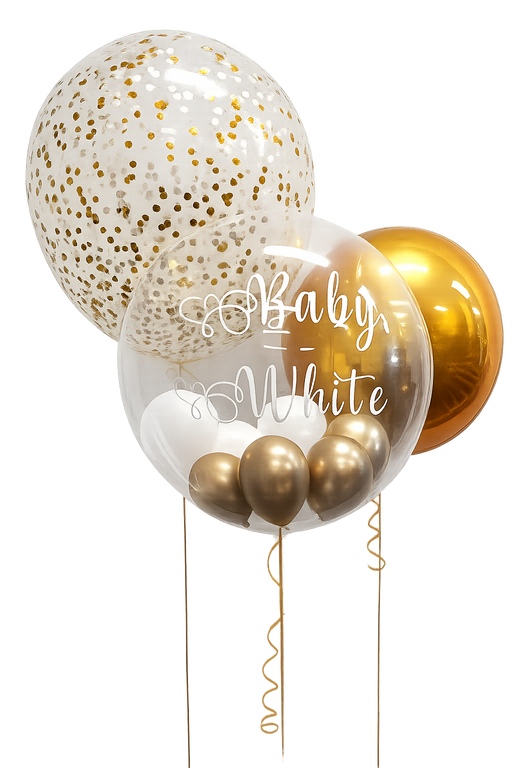 Personalised Gold & White Bubble Balloon Bouquet