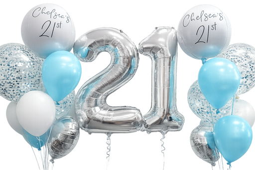Package Includes: 2 x Large Number Foil (86cm) 2 x Personalised Bouquets - Each bouquet contains a custom orbz balloon, 46cm confetti, 30cm con...
