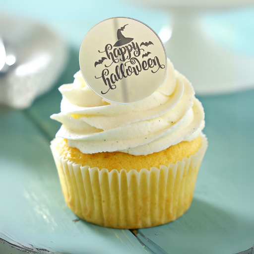 View full detailsAdd a spooky sparkle to your Halloween treats with this set of 10 silver acrylic disc cake toppers. Perfect for dressing up any cake with festive c...