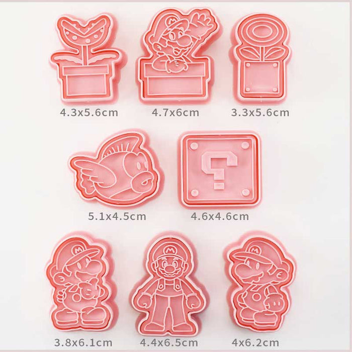 This Super Mario Cookie Cutters Set 8pc is perfect for home baking. The set contains eight unique cookie cutters designed to give you the perfect shape for a variety of treats. Made of plastic, the cutters are safe and easy to use. Featuring a plastic cutter and embosser, this set is perfect for creating fun and unique treats to celebrate a special occasion.