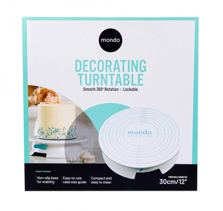 Decorate your cakes with ease using this affordable and nifty Cake Decorating Turntable by Mondo. Unlike other turntables on the market, this turntable features a brake which secures the turntable and stops it from rotating. This is ideal when you need some height to make decorating details easier.