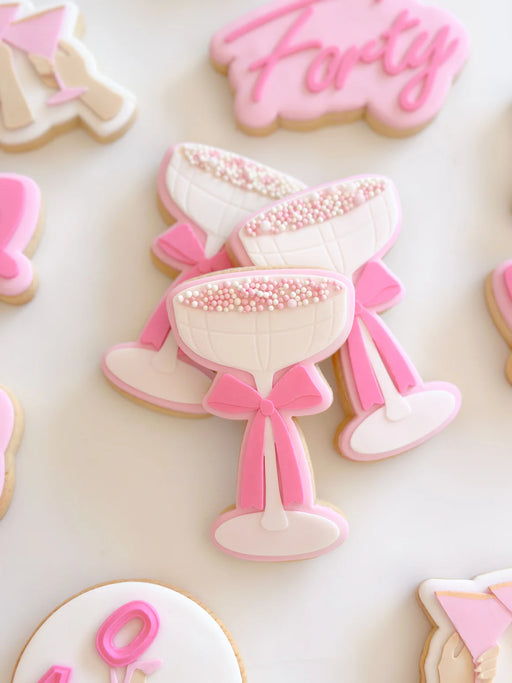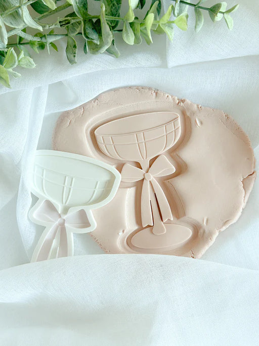 Toast to sweet celebrations with the Champagne Glass with Bow fondant debosser and matching cutter, measuring approximately 40mm x 115mm. Perfect f...