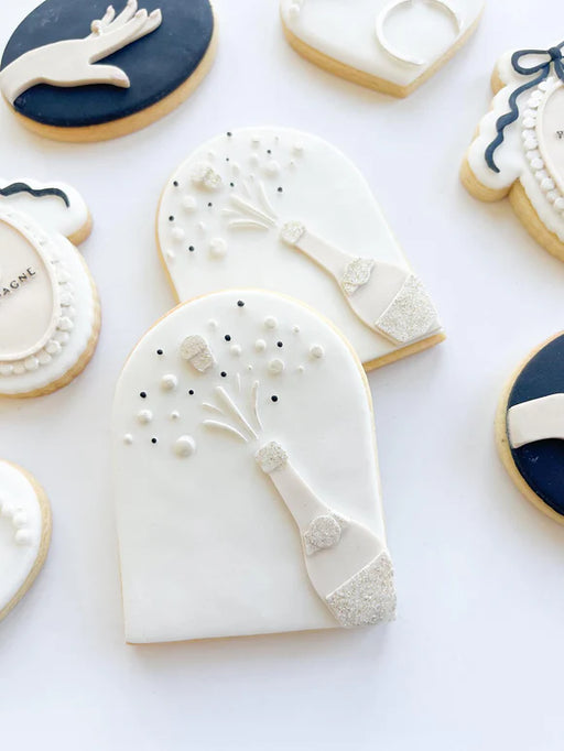 Add a sparkling touch to your cakes with this playful champagne bottle on arch debosser and matching cutter. Measuring approximately 78mm x 95mm, i...