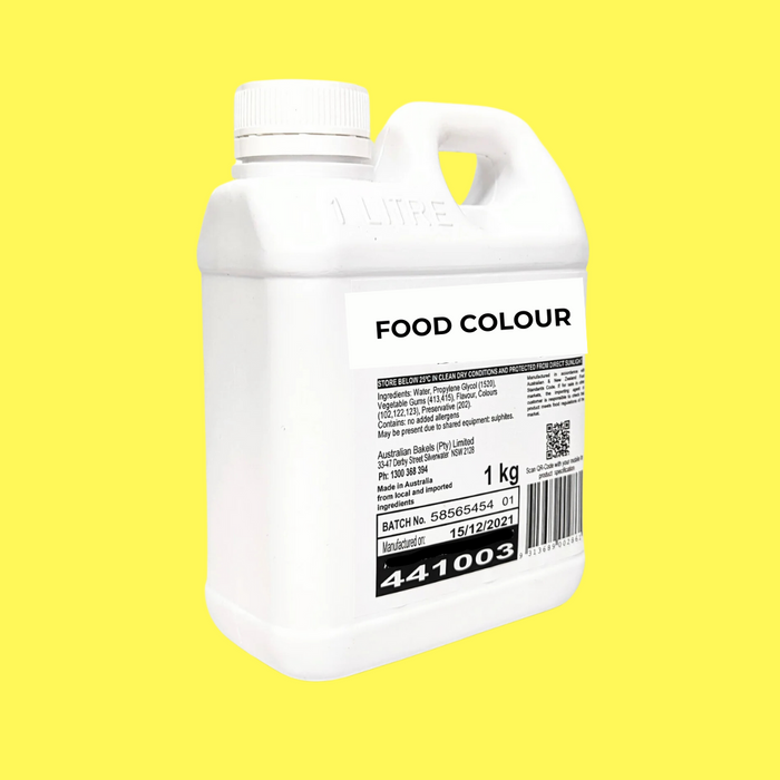 Maximum usage: 10g of Bakels Yellow Colour in 1kg of cream, icings, sponge/batters and piping jellies.