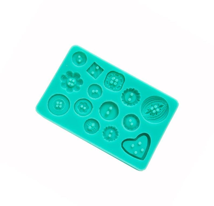 The BUTTONS Silicone Mould is made out of a silicone system specially formulated for use in food and confectionary and complies to FDA regulations. Features 14 different button designs. Overall mould size is approximately 11.0cm x 7.0cm.