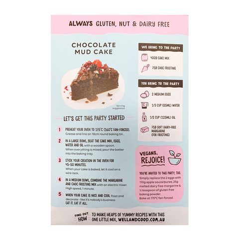 Gluten Free Chocolate Mudcake Mix 475g - Well & Good