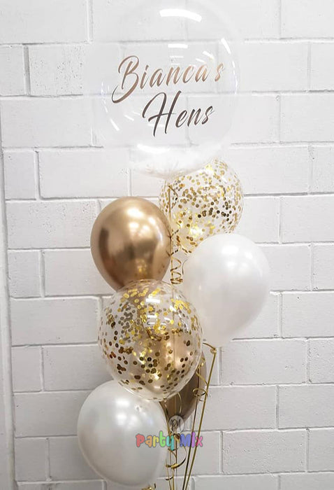 Fraud Blocker Personalised Gold & White Bubble Balloon Bouquet — Party Mix - Perth Party & Cake Supplies Skip to content