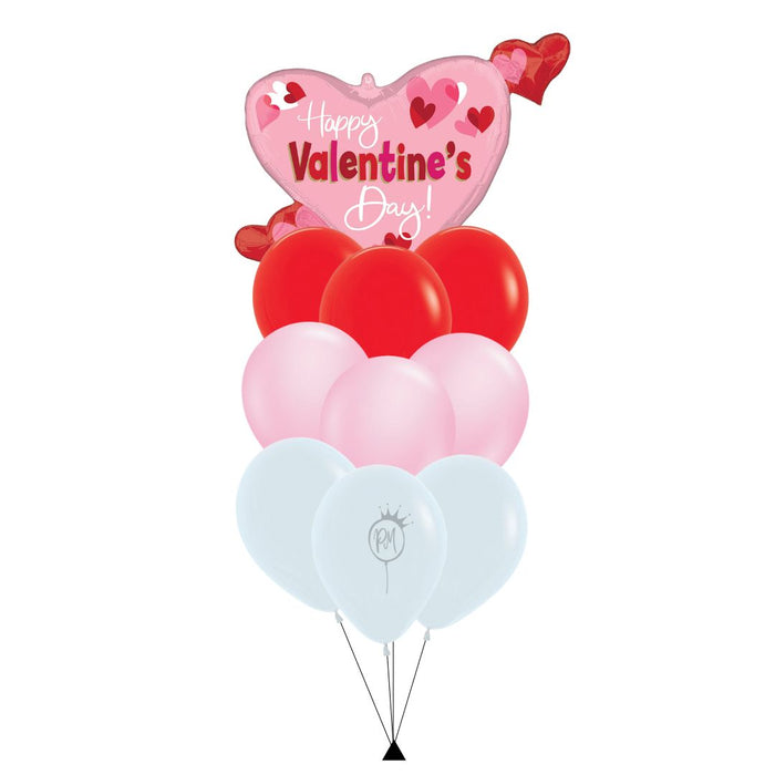 Create a romantic atmosphere with our Swirly Heart Happy Valentines Balloon Bouquet. Our in-store helium inflation, bag, and balloon weight are all included in the price. Order online for convenient click and collect or balloon delivery. Make your loved one's heart soar!